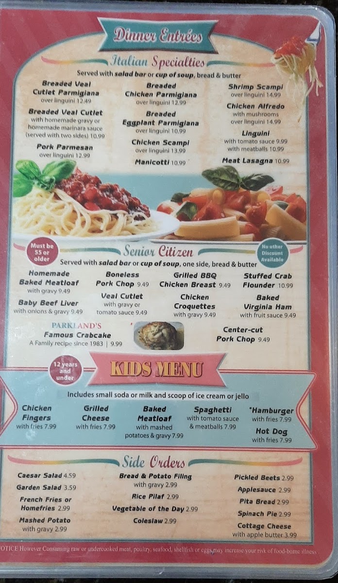 Parkland Restaurant Menu